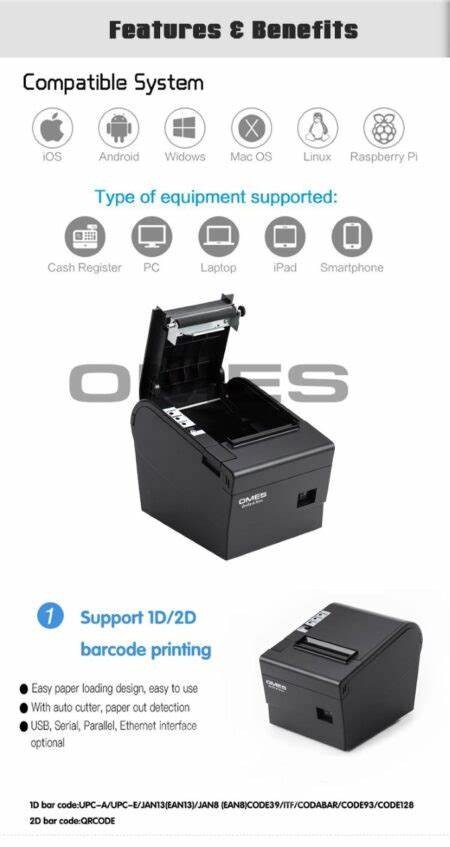 Short Description: Low noise direct thermal printing, USB, Ethernet, Parallel/ WIFI/Bluetooth optional, Auto cutter with long lifespan